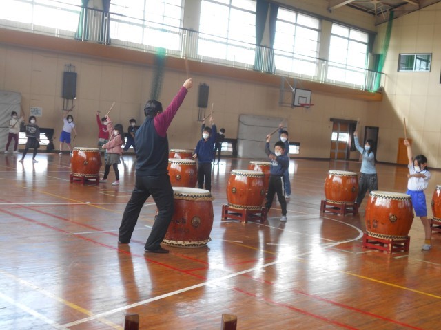 林先生が、来年度雁作太鼓にチャレンジする3年生に、太鼓のお話と基本の打ち方を教えに来てくださいました。