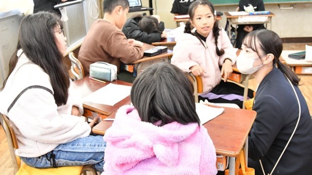 およその数である「がい数」。どんなときに概数を使うかをみんなで考えていまし。4時間目は、国語で学習している「和と洋」についての調査をするため、職員室や事務室にインタビューに来ていました。