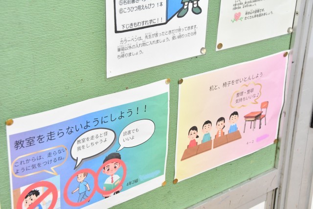 読解の授業で、新聞記事を要約する学習をしていました。教室や廊下に、4年2組が読解で作ったポスターが貼られていました。みんなに呼びかけるポスターを、キャンバで作ったそうです。