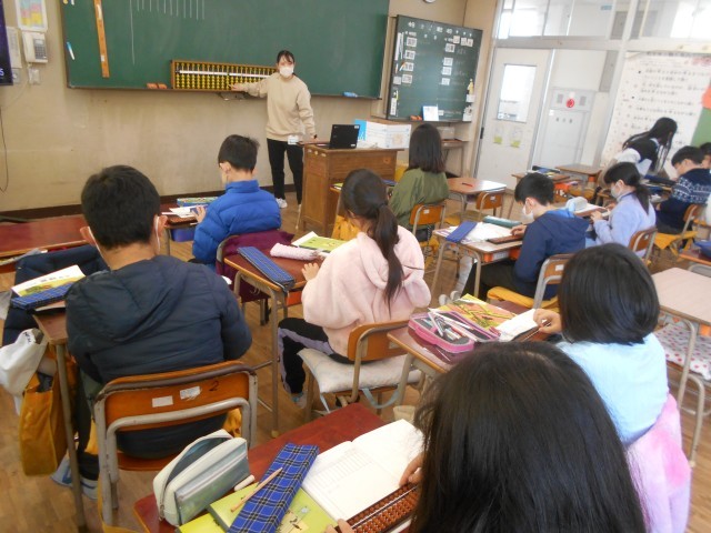 12月22日(月) 4年1組 算数 そろばん