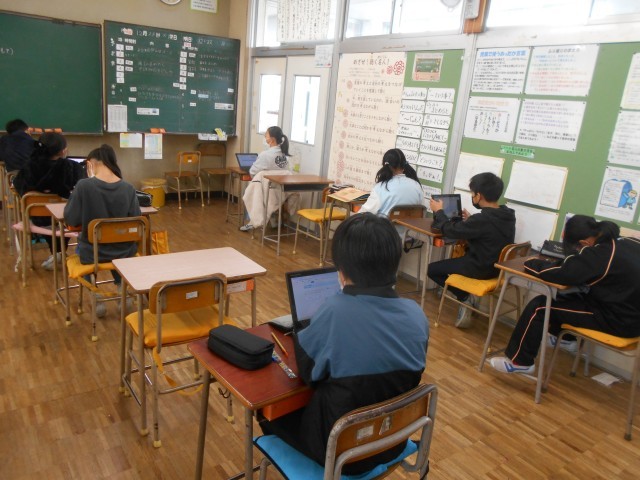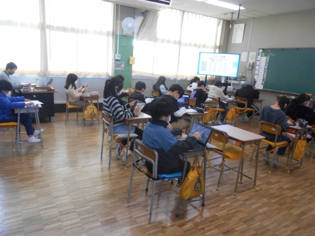 静かにテストに取り組んでいました。終わった人は自習をしていました。