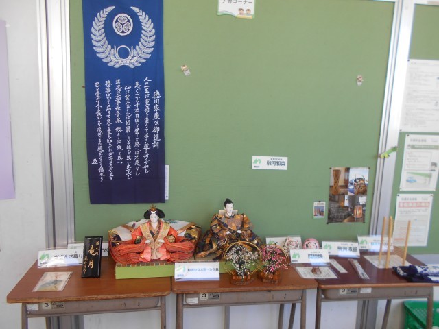 小数の計算の問題をがんばっていました。廊下の学習コーナーに、社会で学習する静岡県の伝統工芸が展示してありました。