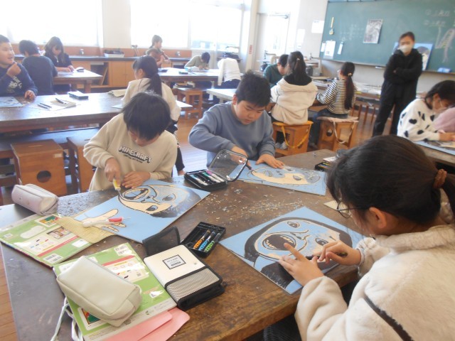 1月29日(木) 4年1組 図工 木版画