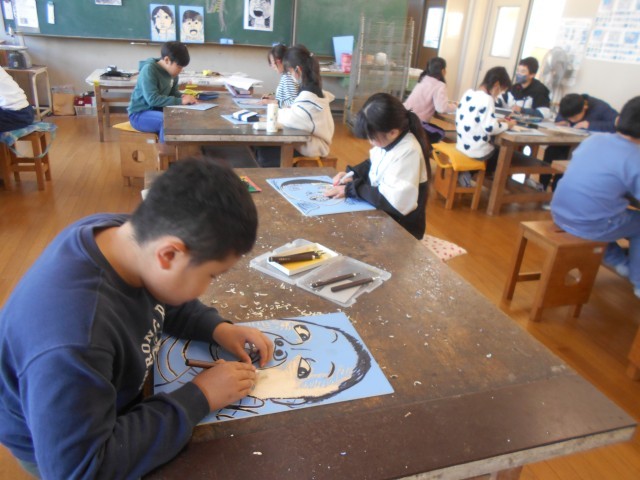 木版画に取り組んでいました。きれいに彫り進めています。