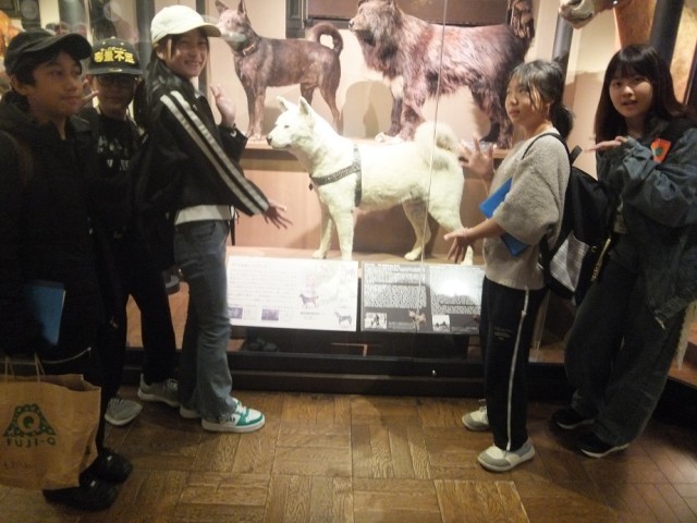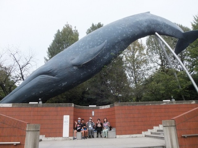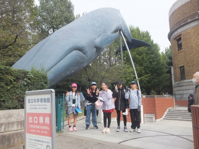 大きなシロナガスクジラが目印の国立科学博物館。自然や歴史が学べます。忠犬ハチ公の剥製を見つけたグループもありました。