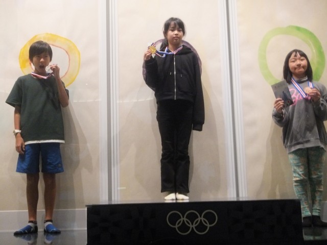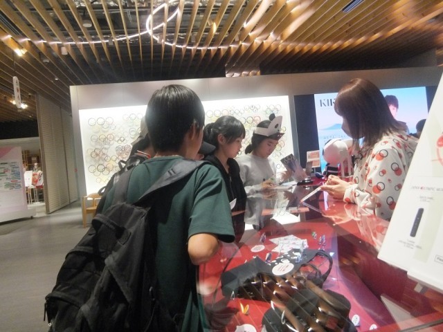 上野のグループワークを終え、オリンピックミュージアムへ。ここでは、オリンピックの歴史を知るとともに、射的や体幹のバランス、ジャンプ力などオリンピアンに挑戦するいろいろなメニューがあり、競技にも親しみました。