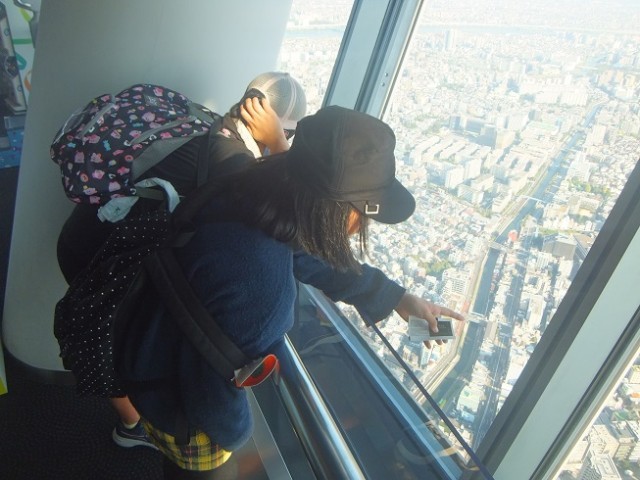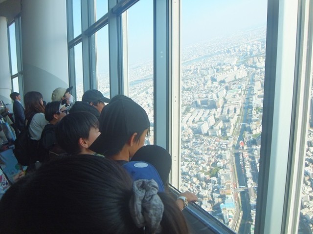 地上350メートルの展望デッキから、東京の町を見下ろしました。高さと一望できる景色の迫力に驚きます。