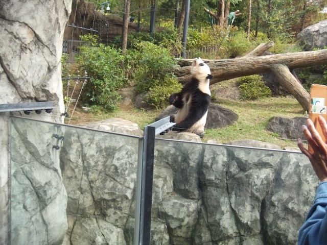 来年2月に中国に返還される「レイレイ」「シャオシャオ」の2頭のパンダ。20分待ちと50分待ちでしたが、短い列は10分ほどで入ることができ、半分くらいのグループが見ることができました。