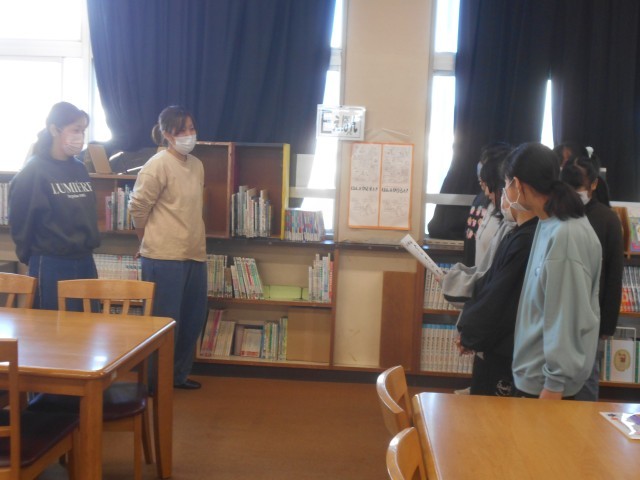 学校の図書館に季節の掲示を飾ってくれたり、書籍の整理をしてくれている保護者ボランティアさんに、図書委員会がお礼を伝えました。子供たちのために気持ちよく使える図書館になるよう力を貸していただきました。本当にありがとうございました。