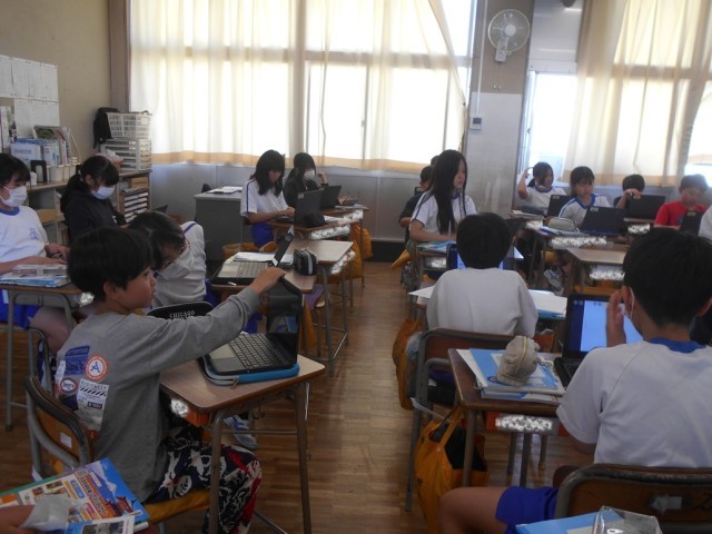 SDGsの17の持続可能な開発目標の中から、自分が関心のある課題を選び、スライドにまとめて紹介する学習をしていました。さすが6年生。課題を選び、資料の選択やスライド作りをテンポ良く行っていました。