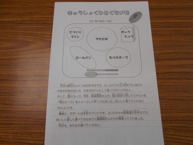 • 12月16日(火) 今日の給食~焼きそばパン~