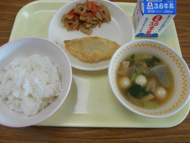 温かい豚汁がうれしい季節です。太刀魚が、ふっくら柔らかくて美味しかったです。放送委員会が「お魚天国」を久しぶりに流してくれました。