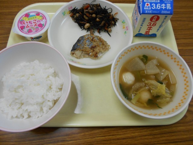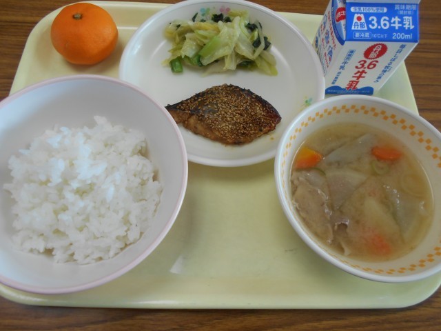 温かい豚汁がうれしい季節です。太刀魚が、ふっくら柔らかくて美味しかったです。放送委員会が「お魚天国」を久しぶりに流してくれました。