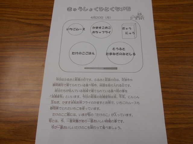 • 4月20日(月)今日の給食~ふるさと給食の日~