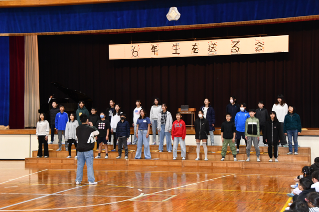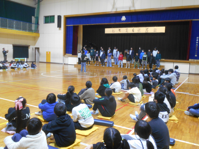 お世話になった6年生に感謝とエールを送るために、「6年生を送る会」が行われました。企画は5年生です。