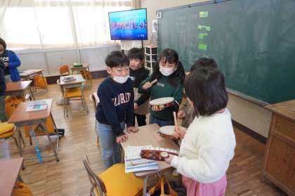 1年生は算数の足し算引き算を、3年生はかかり活動を工夫したことを、5年生は自然教室や企画委員会でたてわりミニ運動会の運営に携わったことなどを発表しました。 -