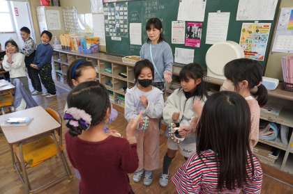 校長からは『戦争をやめた人たち』の読み聞かせを行いました。その後、2学期で退職されるALTの先生から子供たちにあいさつをしていただきました。また、生徒指導主任より、冬休みの過ごし方についての注意事項について話していただきました。