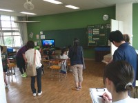休み時間には、企画委員の児童が靴箱付近に立ち、あいさつ運動と共に子供たちの様子を...