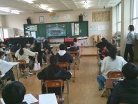 6年生の学習の様子です。両クラスとも落ち着いた雰囲気の中活動を進めていました。毛筆では「ひまわり」という字を丁寧に視写していました。