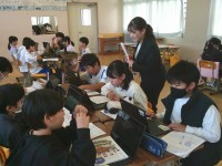5年生の学習の様子です。3クラスの児童みんなが目を輝かせながら学習に取り組んでいました。理科では花の特徴を知るために、おしべとめしべを観察しました。