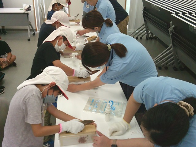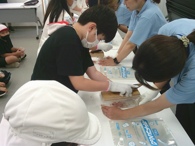 焼津水産加工センターでは、実際に削り節を作る体験をしました。みんな上手に作業することができました。