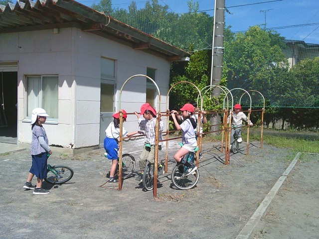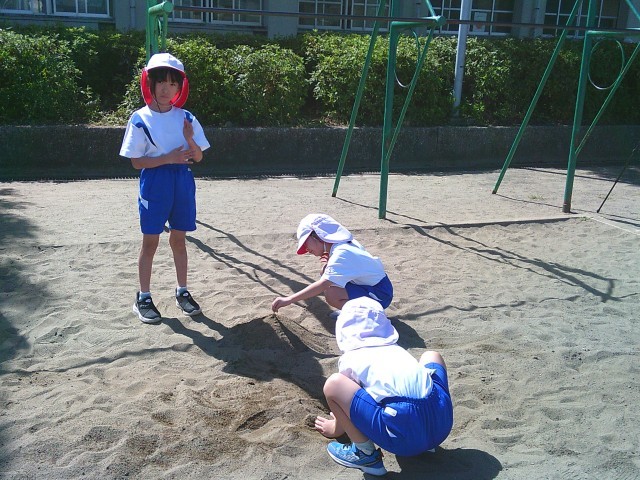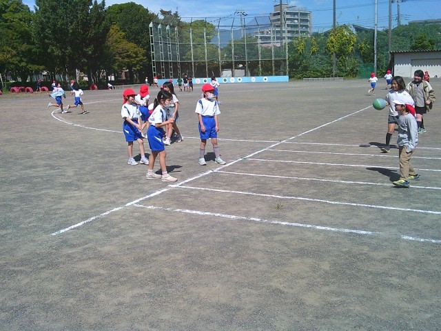 休み時間の様子です。子供たちはグラウンドに出て、思い思いの活動に参加しています。