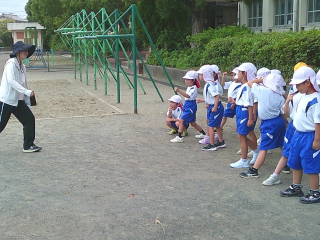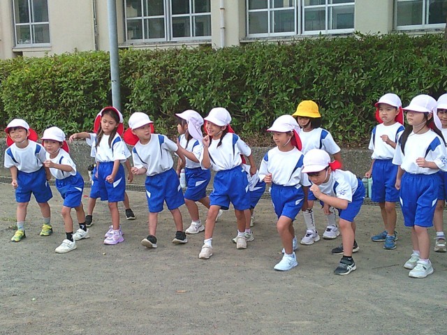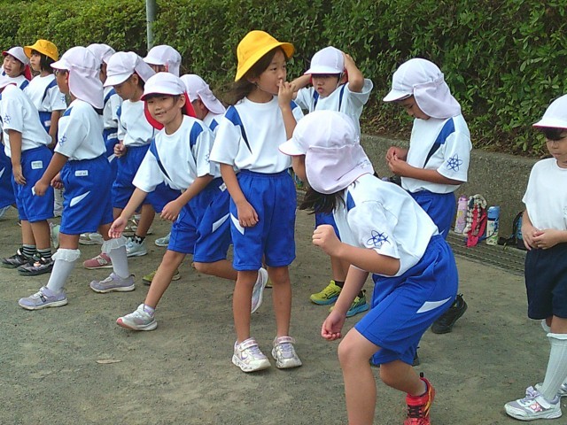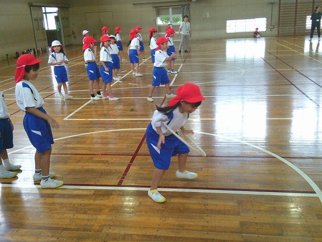 1年生の学習の様子です。3クラスとも体育の学習をグラウンドと体育館でそれぞれ行っていました。運動会に向けた練習も始まっています。