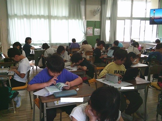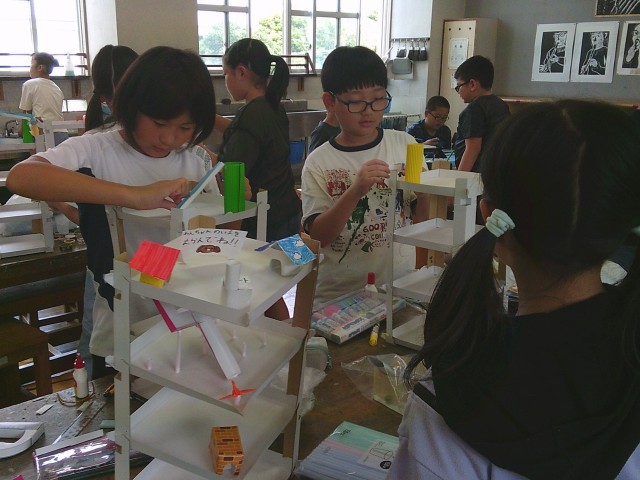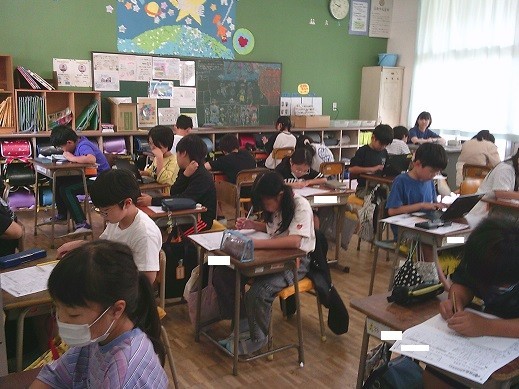 4年生の学習の様子です。両クラスとも落ち着いた雰囲気の中活動を進めていました。図工では立体迷路作成、社会では単元テストを行っていました。