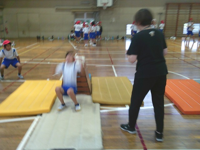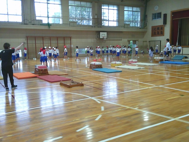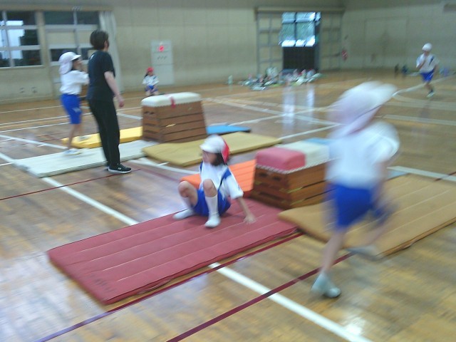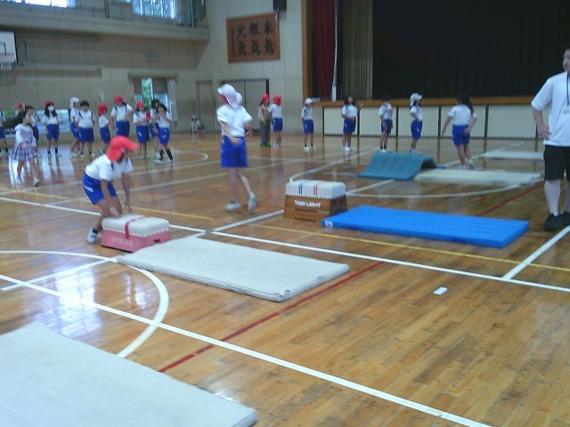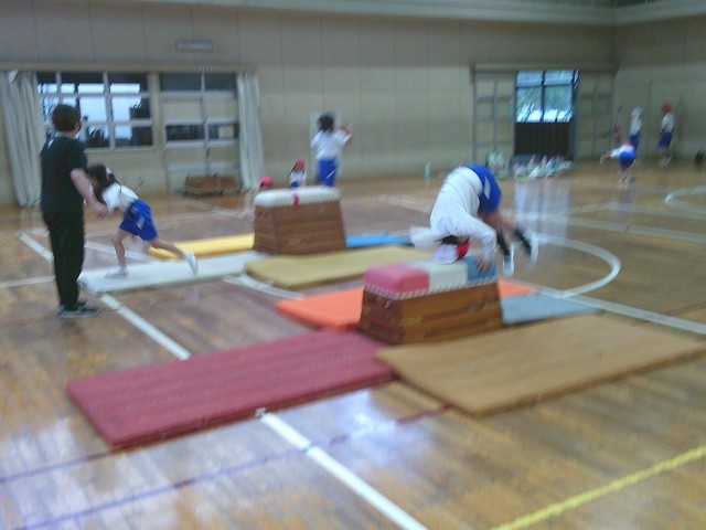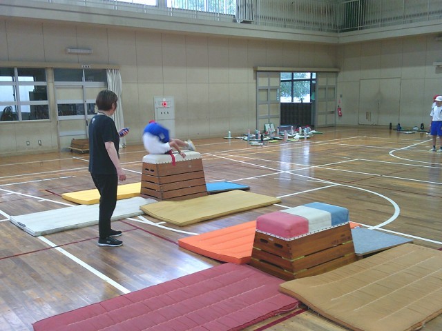 3年生の学習の様子です。両クラス合同で体育「マット運動」を行っていました。台上前転や開脚とび等、いろいろな種目にチャレンジしていました。