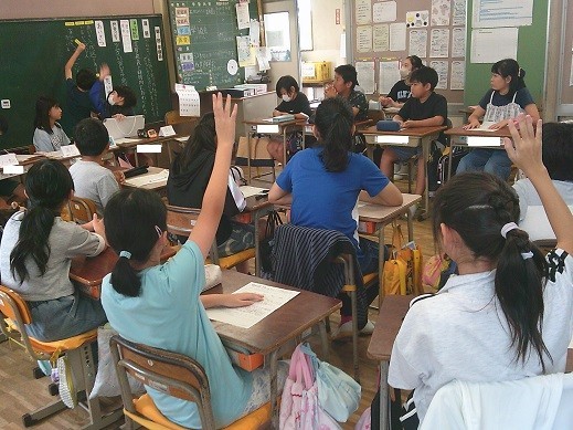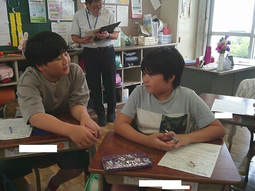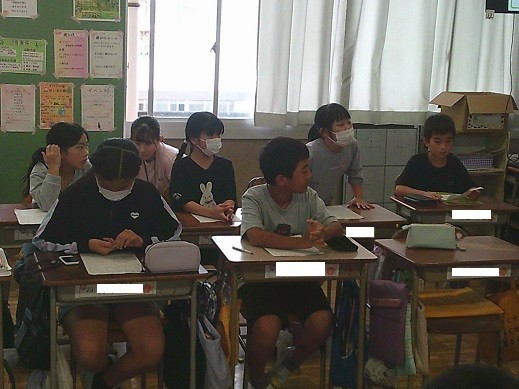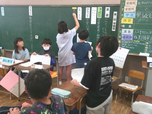 5年生は学級活動の時間で、「学級目標」をテーマに話し合い活動を進めました。なお、この時間は教員の指導力向上を目的として、数名の教員が授業を参観しました。