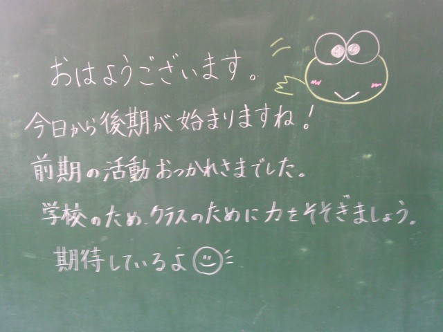 学級担任が黒板メッセージを用意して、子供たちの登校を待ちます。
