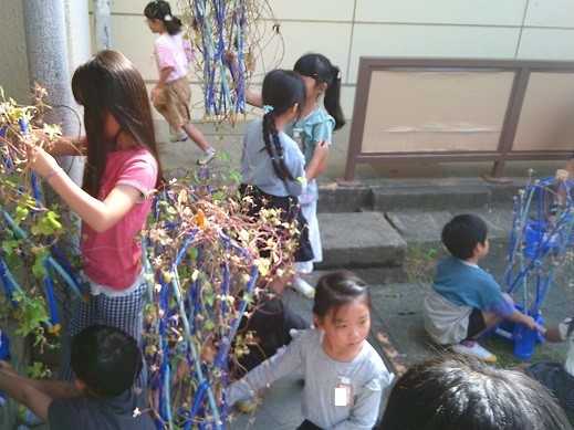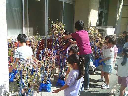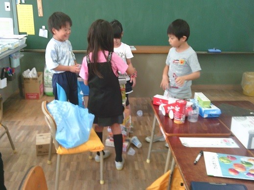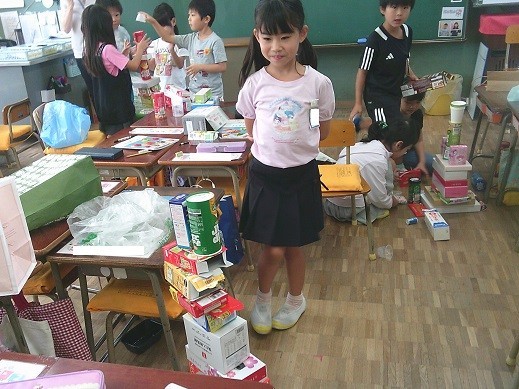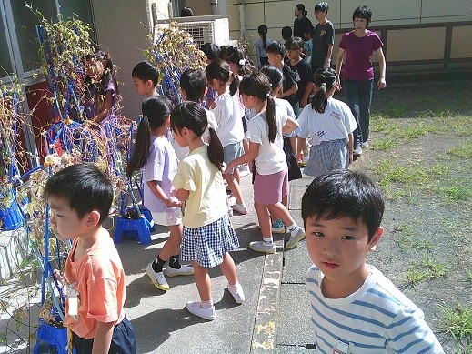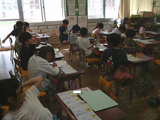 1年生の学習の様子です。3クラスの児童みんなが目を輝かせながら学習に取り組んでいました。1組はリース制作を行いました。2組は国語の新出漢字、3組は算数の「形遊び」をそれぞれ行っていました。