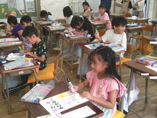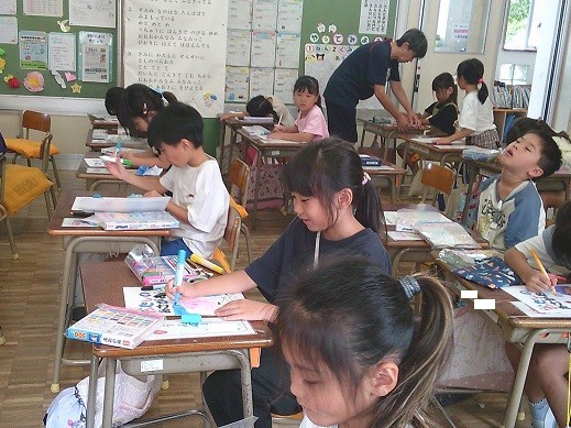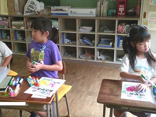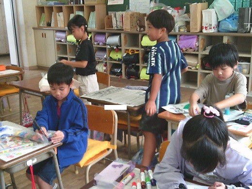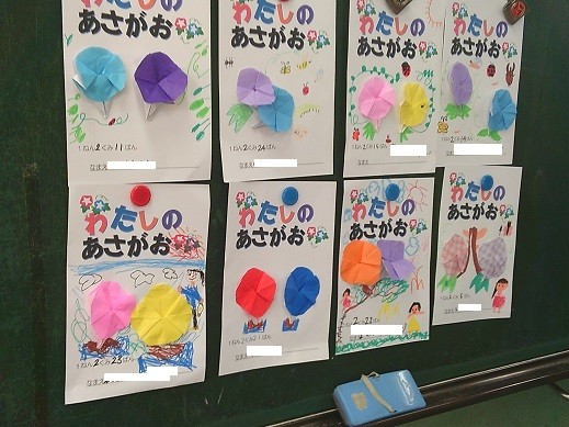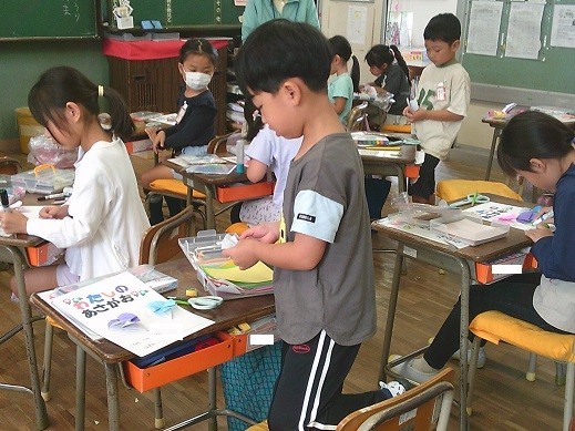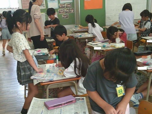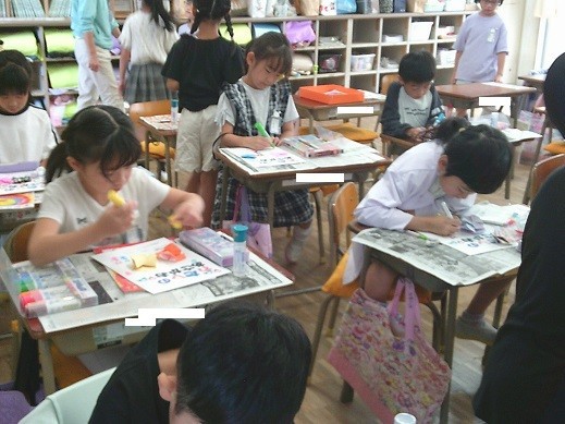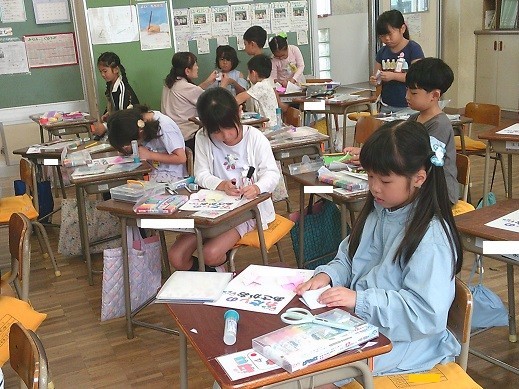 1年生の学習の様子です。3クラスとも図工で「あさがおブックの表紙作り」を行っていました。みんな上手に出来ました。