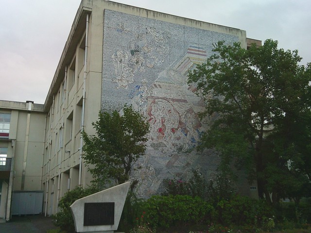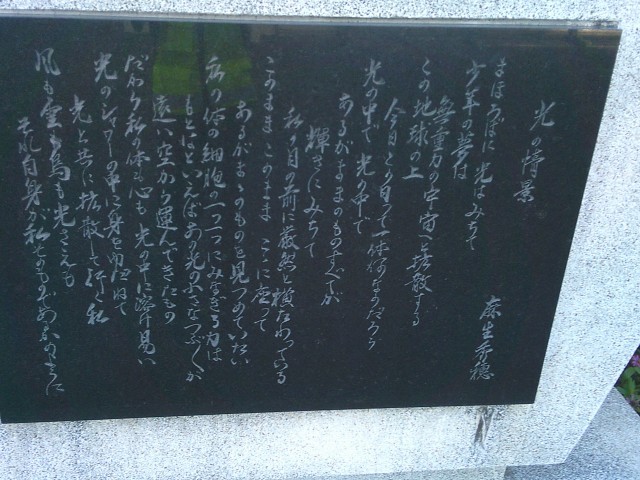 本校校舎には開校以来、大きなモザイク壁画が子供たちの登下校を見守っています。作者の麻生秀穂さんは、沼津市出身の造形芸術家で東京藝術大学名誉教授です。モザイク壁画の傍に、「光の情景」という詩があります。来校の際には、ぜひご覧ください。