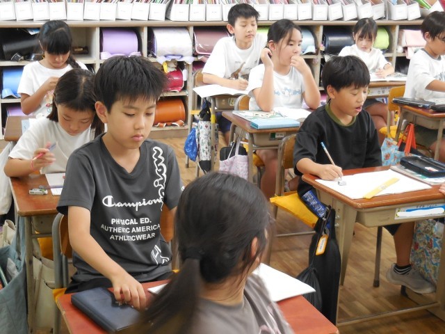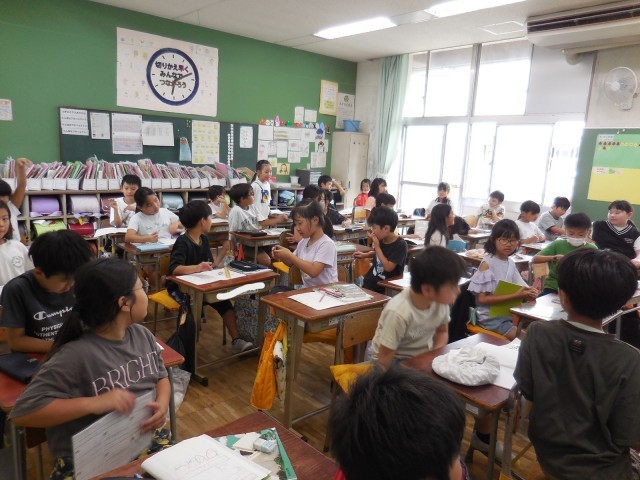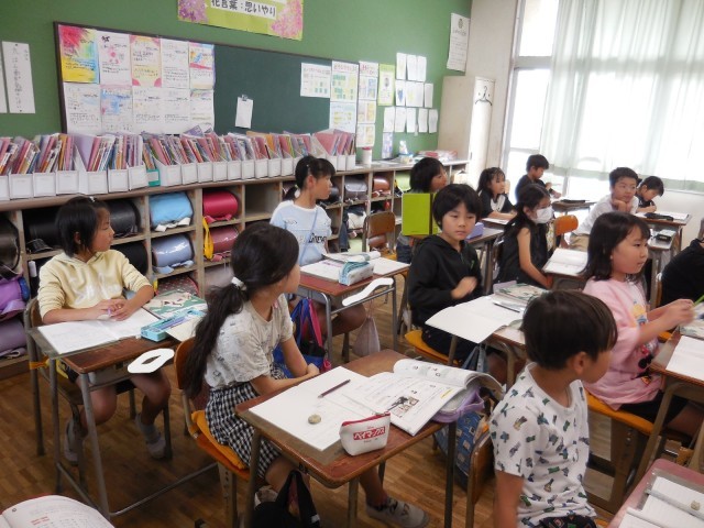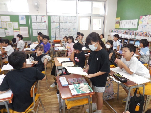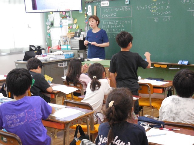 算数では、計算の仕方について考え、自分の方法をみんなに説明していました。「ここまでわかりますか?」と確認しながら上手に話していました。