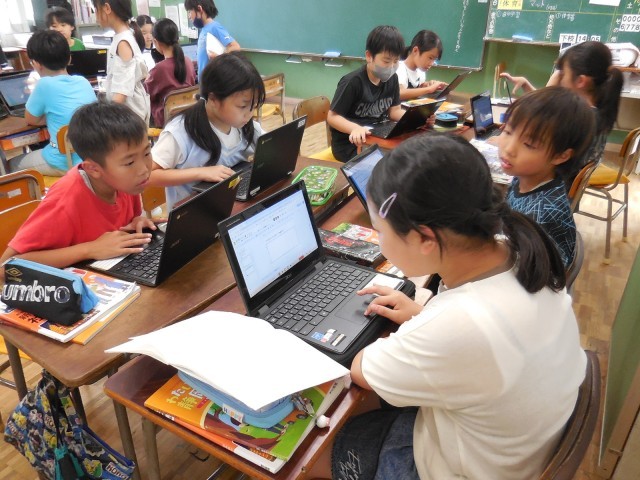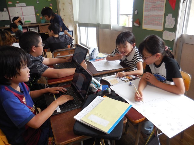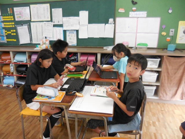 4年生は、社会で浜松のおまつりのことについて調べていました。友達と協力して調べていました。