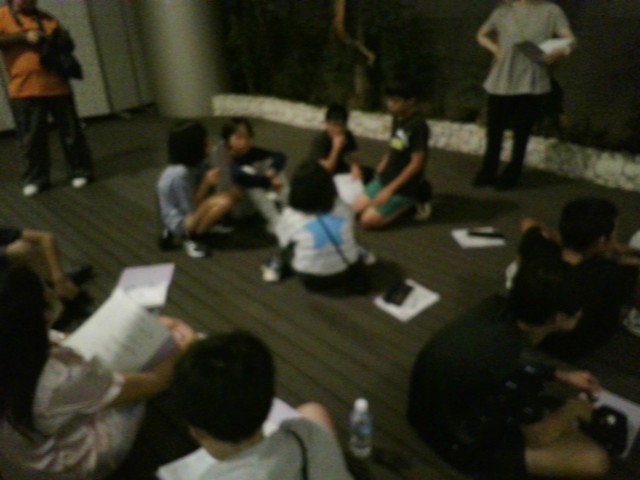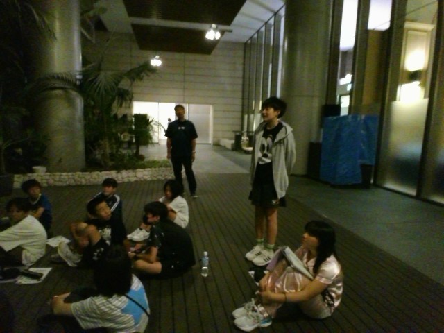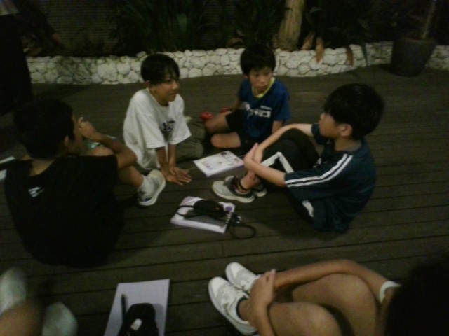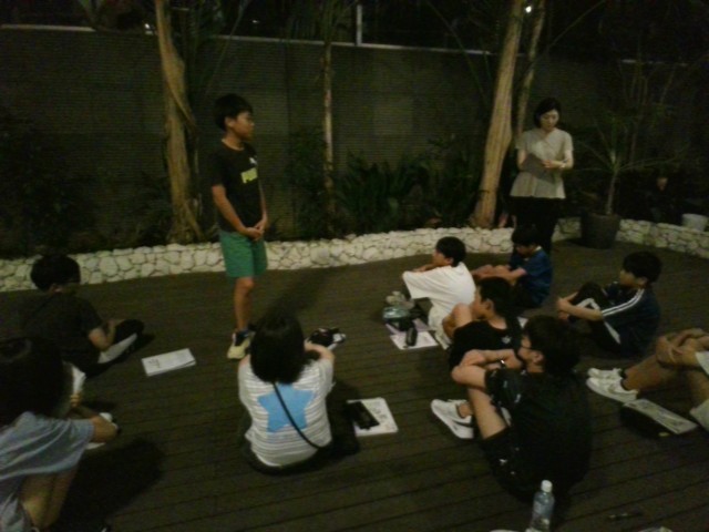 一日目の終わりに班会議が開かれました。班長さんと室長さんが今日の反省や明日の確認をしました。