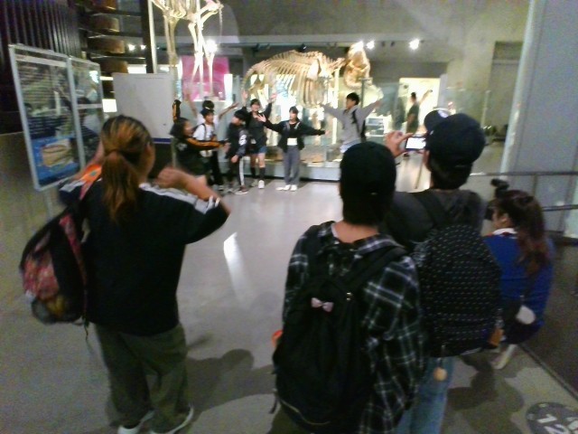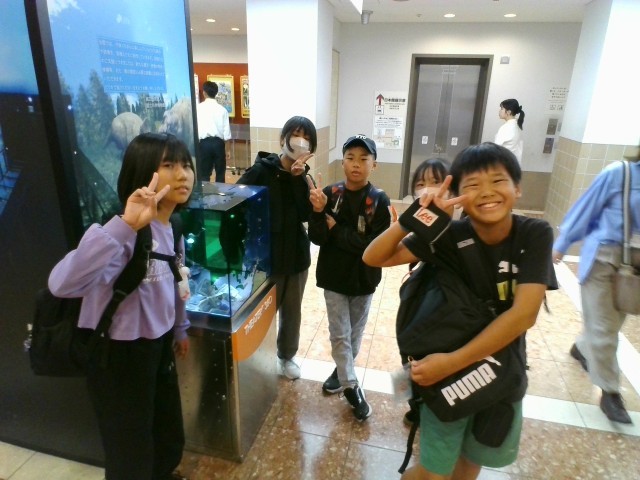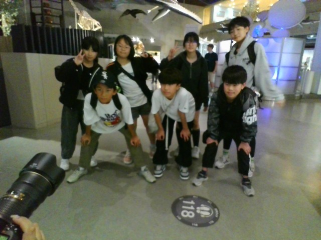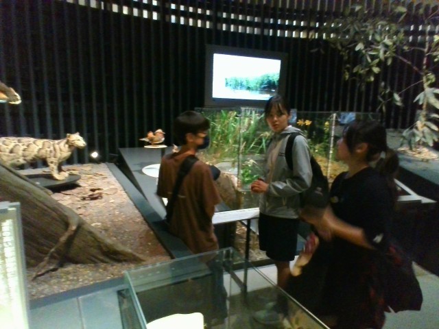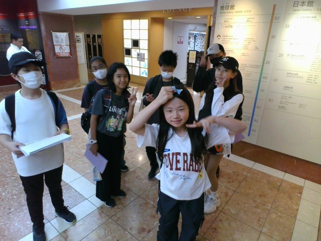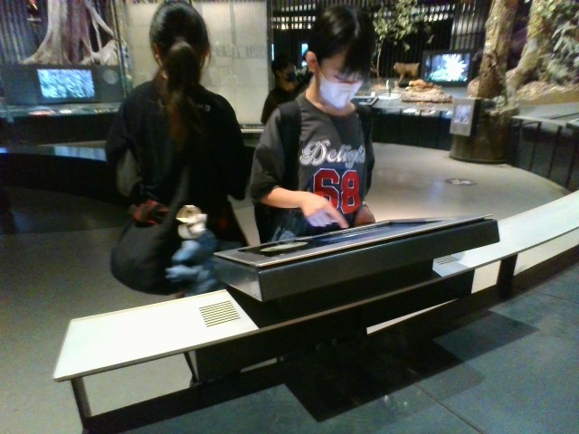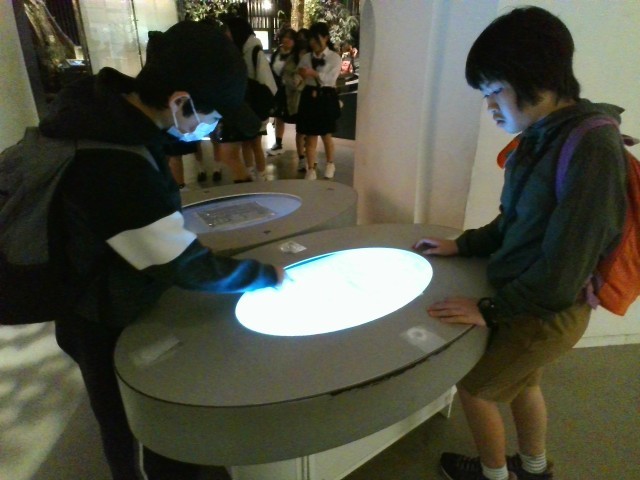 最初に科学技術館に入りました。みんな科学の探求をしています。