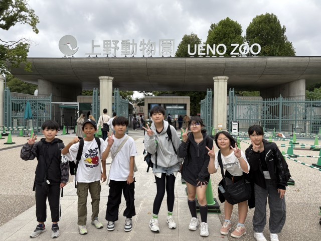 上野動物園前で記念撮影しました。雨も降らず過ごしやすいです。