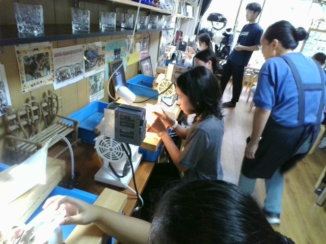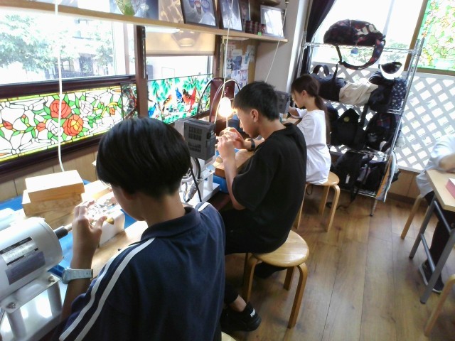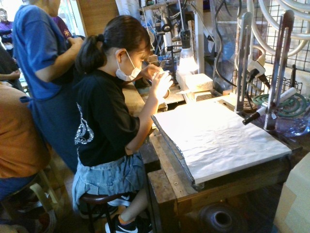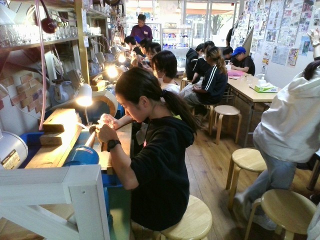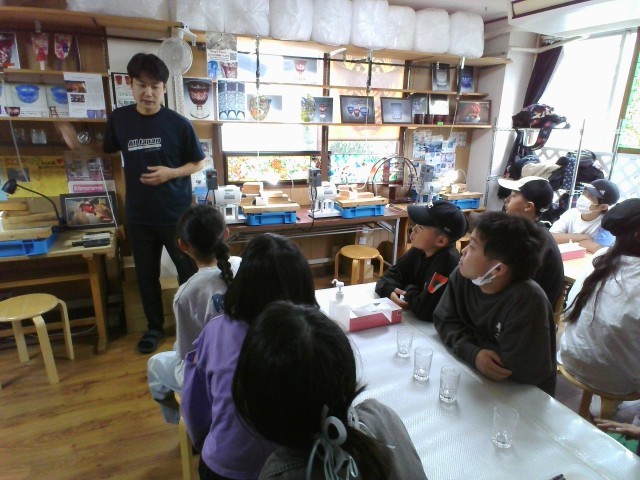 上野公園を後にして、両クラスとも浅草に入りました。1クラスは切子工房おじまさんでの切子体験、もう1クラスは浅草散策を行っています。1時間ほどで交代します。切子体験では、6年生がオリジナルのグラス制作をしています。