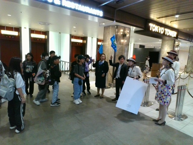 最後の見学地である東京タワーに到着しました。みんな元気に行動しています。