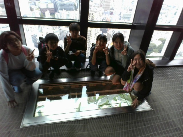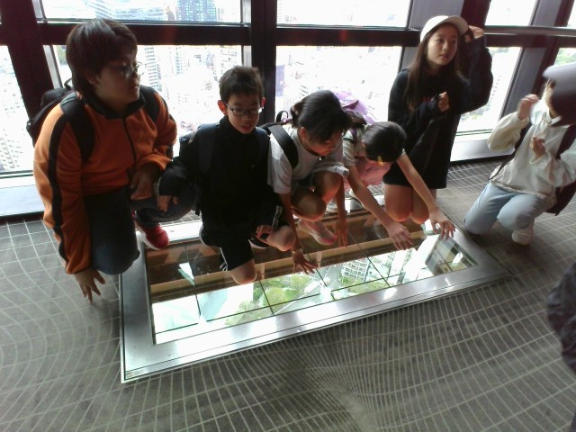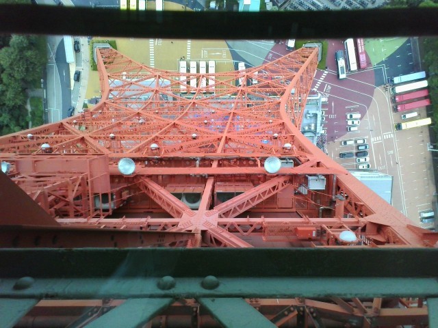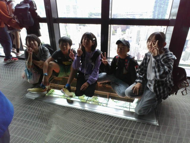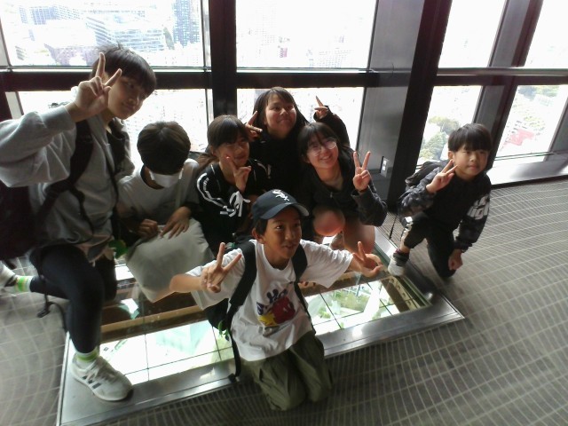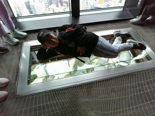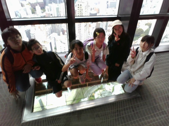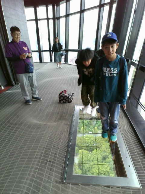 東京タワー名物スカイウォークウィンドウでは、145mの真下を覗きました。横に寝そべる子もいました。