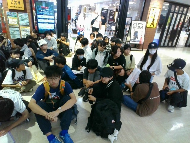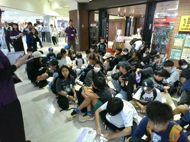 東京タワーでの見学が終わりました。集合場所で学年主任から話がありました。この後、バスに乗り込んで沼津に向かいます。