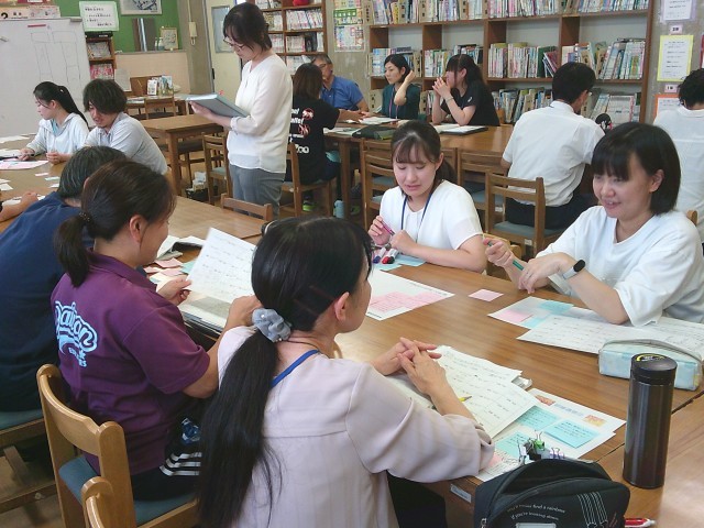 放課後に校内研修を開きました。午前中に行われた2年2組の国語科公開授業について、全教員で協議しました。