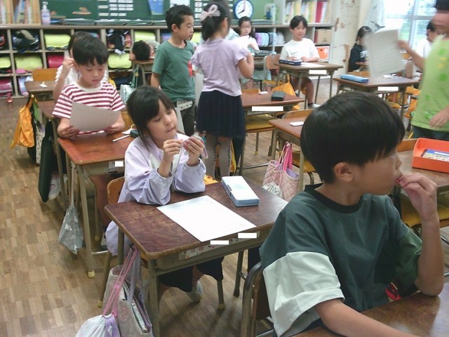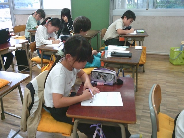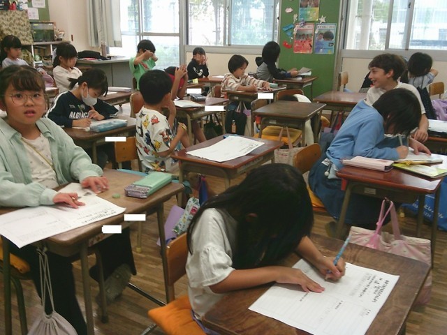 2年生の学習の様子です。3クラスとも真剣に学ぶ姿が見られました。生活科では沼津駅見学のまとめ、算数ではかけ算九九(五の段)の暗唱テストをそれぞれ行っていました。