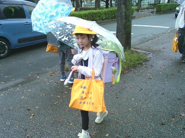 登校時には霧雨となり、傘をささないで登校する子も見られました。今日も一日がんばりましょう。