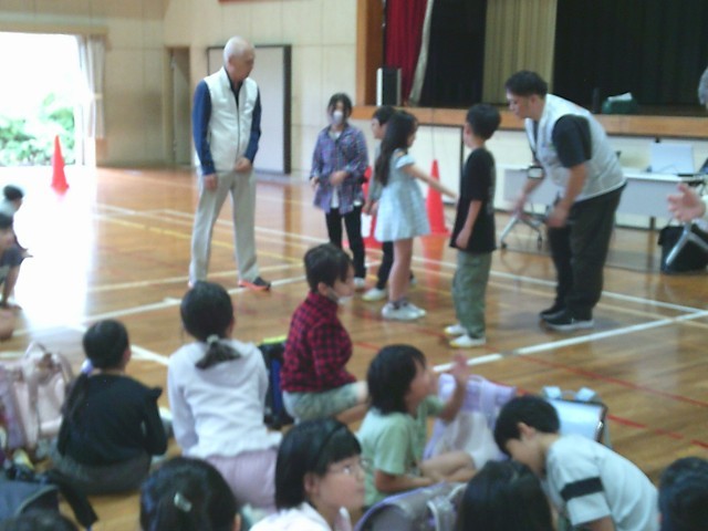 本日、静岡県防犯アドバイザーの方を招聘し、1・3年生が「あぶトレ!」(子供の体験型防犯講座)を開きました。最初に「自分の安全は自分で守る」ということを確認した後、歩き方やすれ違いの際の対応法などをトレーニングしました。