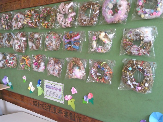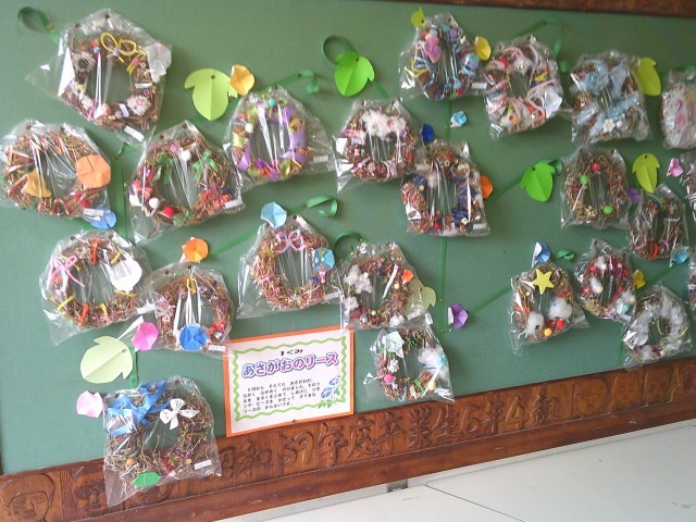 中央廊下に1年生が作成したあさがおのリースを掲示しました。来校の際にご覧ください。