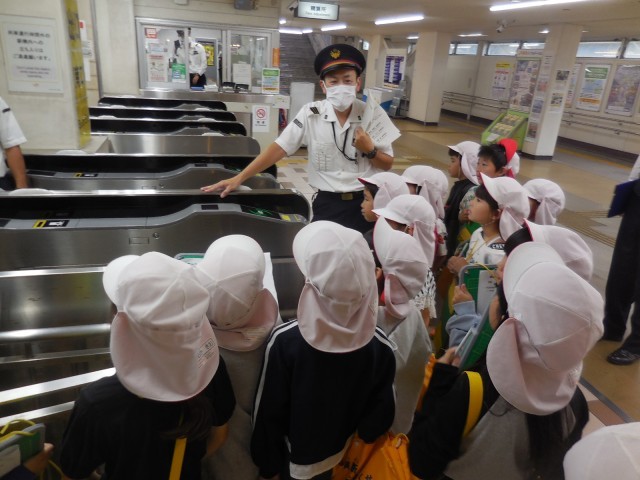 14日、2年生は沼津駅見学に行ってきました。駅構内の様子や切符の買い方、自動改札機の通り方などについて駅員さんから教えていただきました。