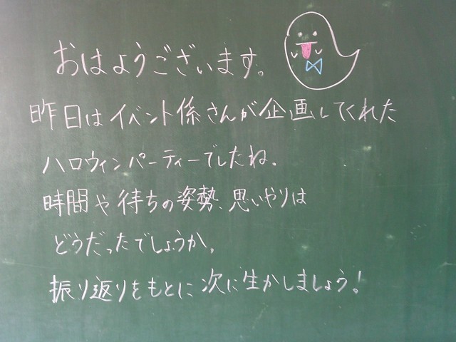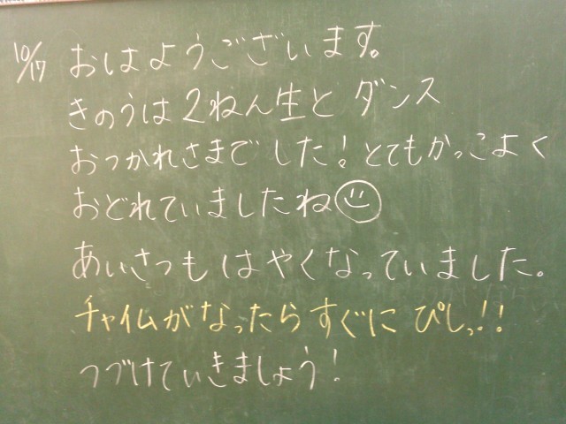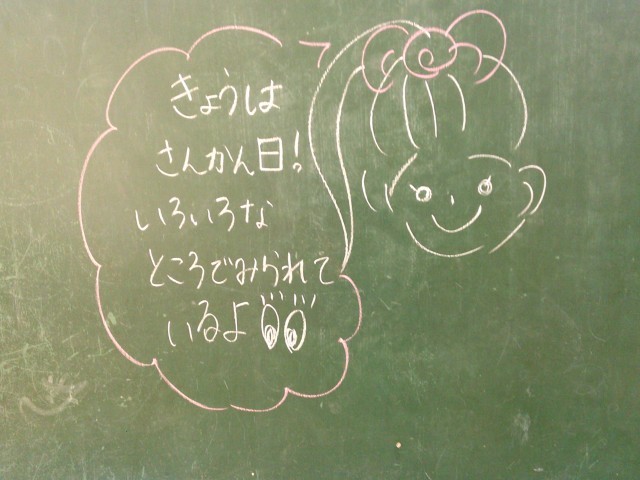 学級担任が黒板メッセージを用意して、子供たちの登校を待ちます。